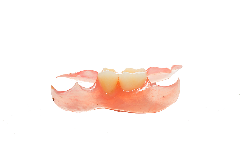何よりの利点は、薄くて違和感が少なく、目立たないことです。金具を使わず半透明の樹脂の弾性を利用して支えていますので、残った歯への負担も少なくなります。ただし、噛むときに主に負荷がかかる部分が樹脂なので、耐久性は若干劣ります。また、状態によっては、歯の噛み合わせのところの一部に金具を使う場合もあります。