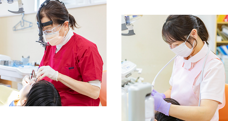 その状況になった原因を模索して改善するための治療方法を立案、一度治療した箇所を再度治療することのないように、また長期に渡り維持できる最善の治療となるよう取り組んでいます。